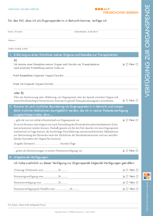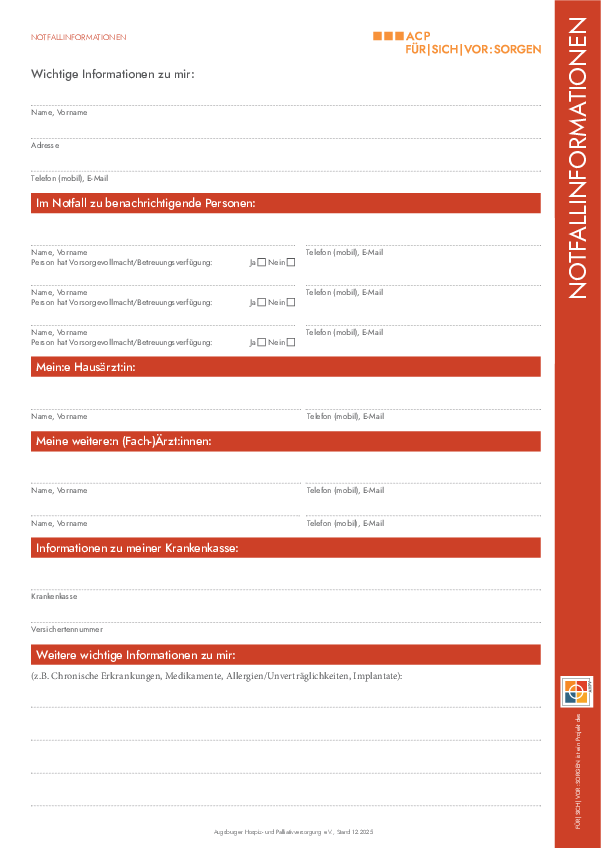 Die leuchtend orange Notfallmappe soll helfen, alle relevanten Dokumente, z.B. Patientenverfügung oder Arztbriefe, im Notfall griffbereit und leicht auffindbar zu machen.